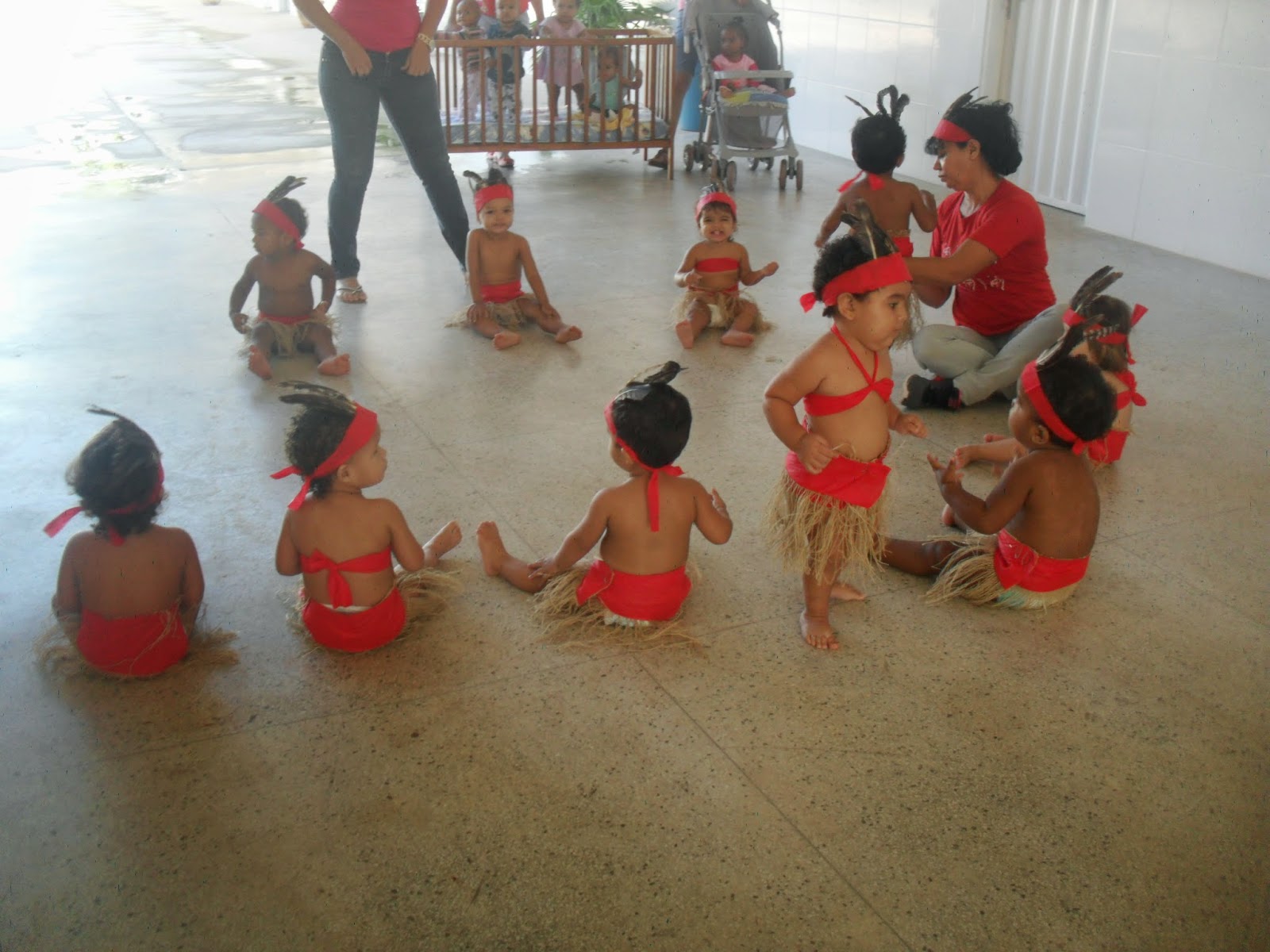 Apresentação com alunos do maternal I data comemorativa do dia 19 de abril dia do índio com as professoras Maria do Amparo e Roberta.